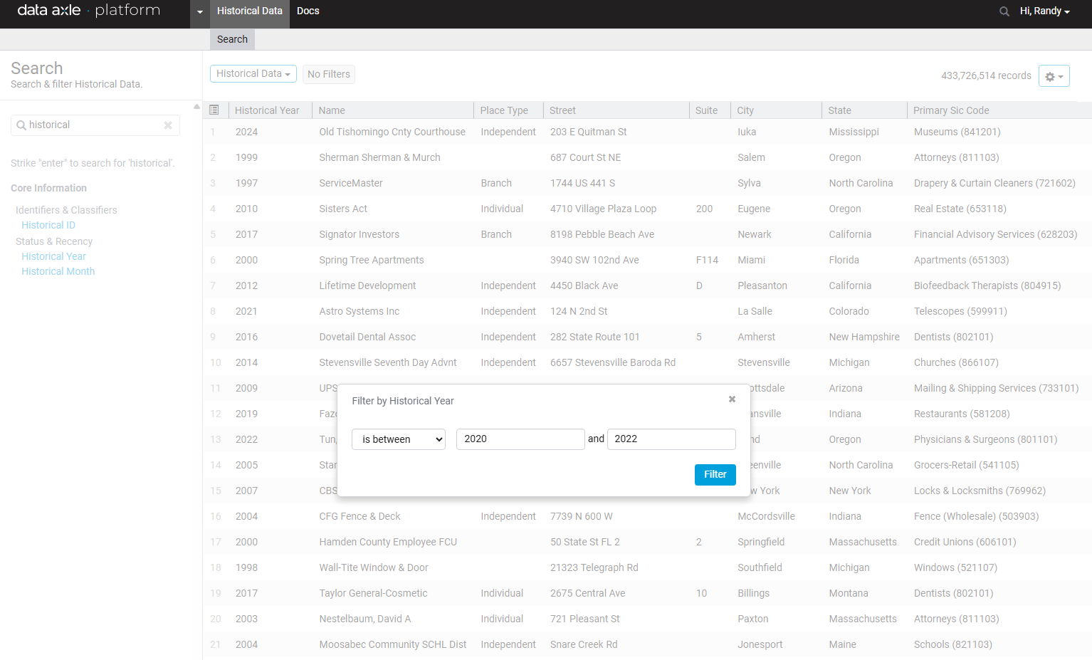 - Each field supports various ways to filter.
