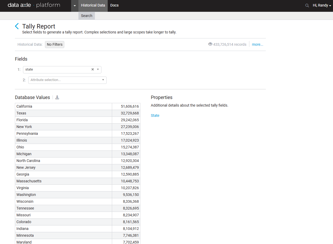 - Select up to 3 fields to generate a Tally Report.