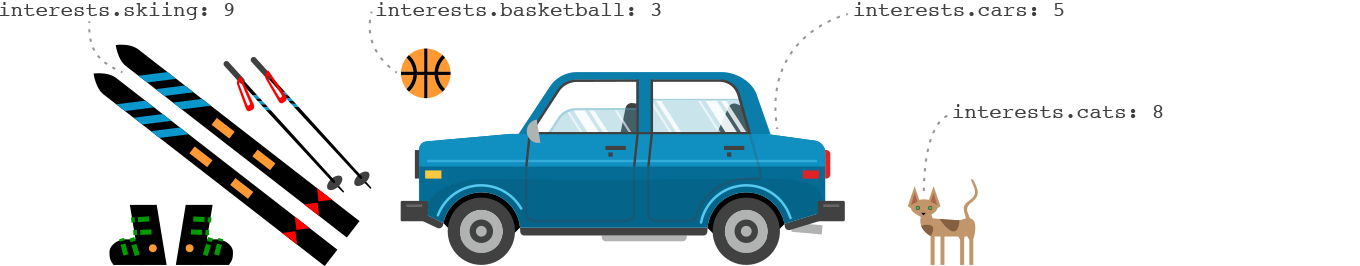 first_name: "Joe"last_name: "Smith"interests.cats: 6interests.magazines: 9interests.books: 2