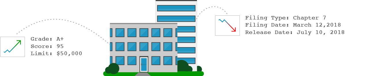 The bankruptcy attributes include only the most recent public record for a Place. Public records impact a Place's creditworthiness.