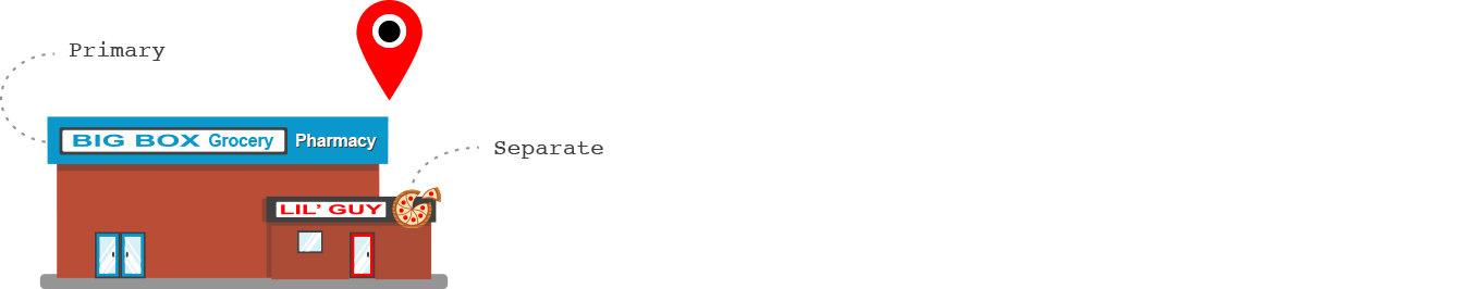 Multi-Tenant Linkage links businesses within a larger complex or building such as an office hi-rise, shopping center, or plaza.