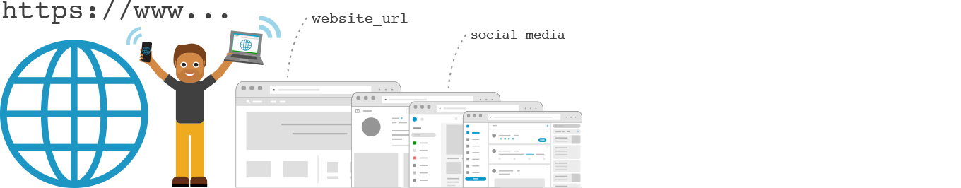Details about a place’s primary website and social media presence are represented in the following attributes:
