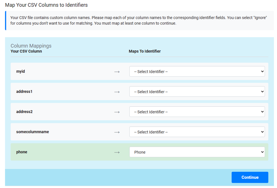 3. Map Custom Columns to Identifiers (Optional)