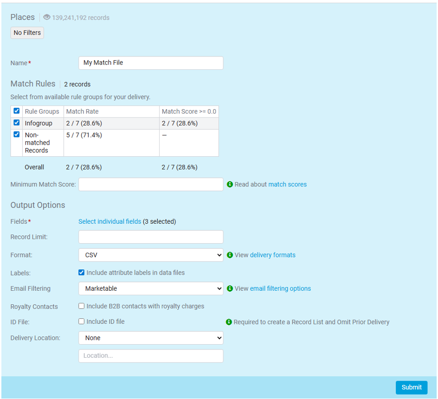 - Click Submit to generate a file