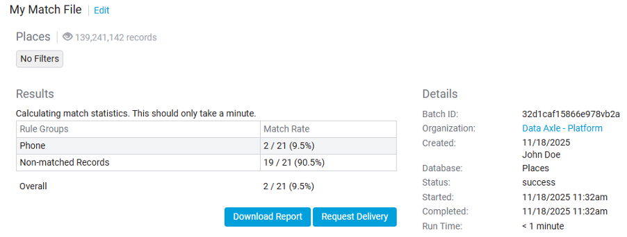 - View overall and per-rule match rates