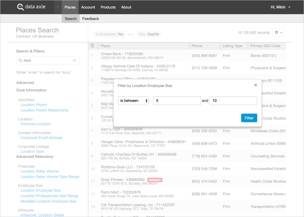 - Each field supports various ways to filter.