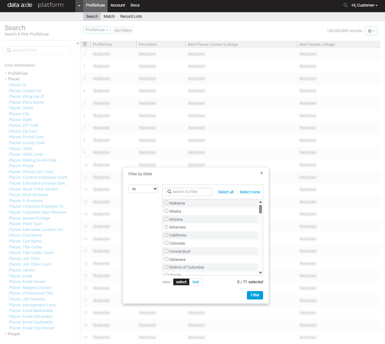 - Each field supports various ways to filter.