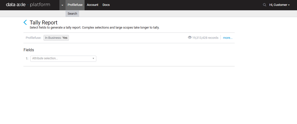 - Select up to 3 fields to generate a Tally Report.